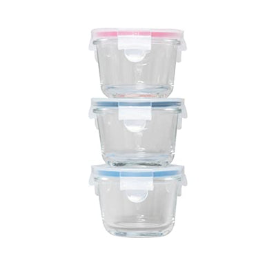 GENICOOK Borosilicate Glass Small Baby-Size Meal and Food Storage Containers, Round Shape - 6 pc Set (3 Containers - 3 Matching Lids)