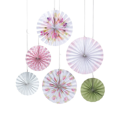 Garden Party Printed Hanging Fans - Party Decor - 6 Pieces