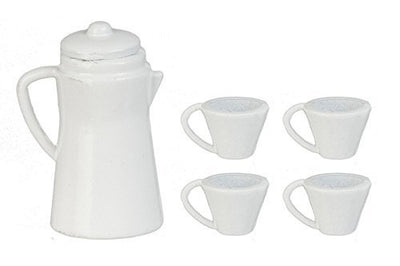 Aztec Imports Melody Jane Dollhouse White Coffee Pot & Mugs Miniature Kitchen Accessory