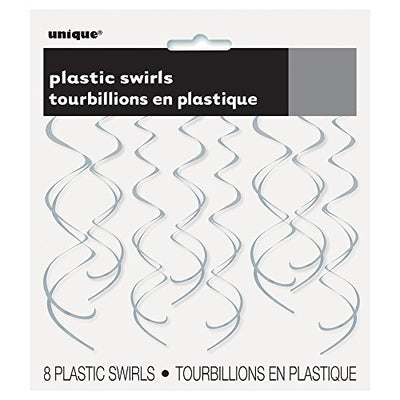 Unique Industries 26" Plastic Hanging Swirl Silver Decorations, 8ct
