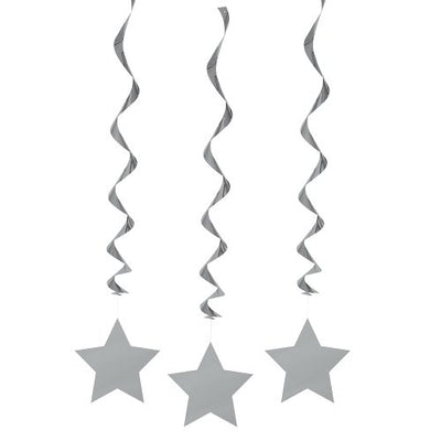 Unique Industries 26" Hanging Silver Star Decorations, 3ct
