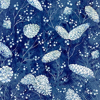Boston International IHR Winter Holiday Christmas 3-Ply Paper Napkins, 20-Count Lunch Size, Frosted Pinecones