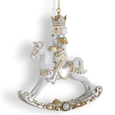 K&K Interiors 54869B White Gold and Silver Resin Nutcracker on Rocking Horse Ornament, 6.25-inches Height