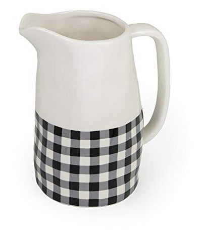 Boston International Ceramic Drink Pitcher, 5.5 Cups, Black & White Check