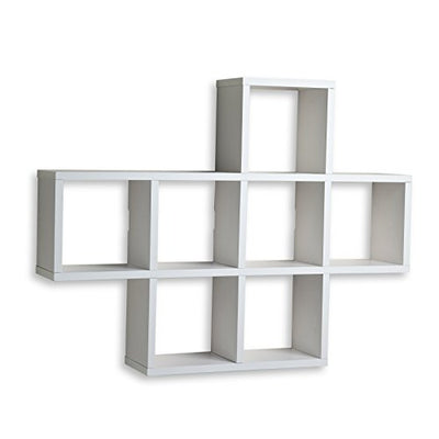 Danya B. XF11056WH Decorative Shelf – Wall Mount or Free Standing - Square Cubbies Shelving Unit – White Laminate