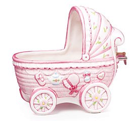 burton + BURTON 976430 Planter Girl Carriage Hand-Painted Raised Ceramic, Multicolor