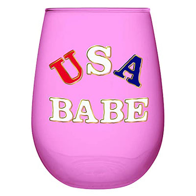 Creative Brands Slant Collections Patriotic Stemless Wine Glass, 20-Ounce, USA Babe
