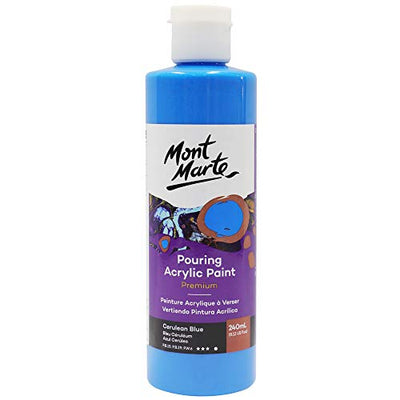 Mont Marte Premium Pouring Acrylic Paint, 240ml (8.11oz), Cerulean Blue, Pre-Mixed Acrylic Paint, Suitable for a Variety of Surfaces Including Stretched Canvas, Wood, MDF and Air Drying Clay.