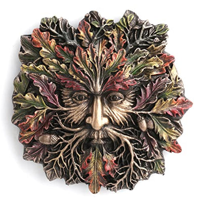 Unicorn Studio Veronese Design 5 1/8 Inch Autumn Equinox Acorn Greenman Wall Sculpture Hand Painted Resin Plaque