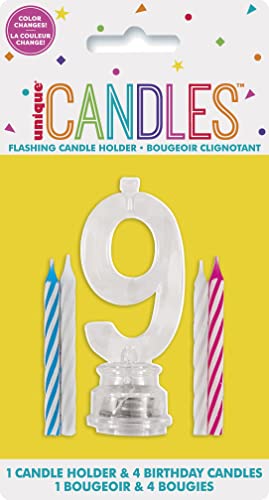 Unique Industries Multicolor Flashing Number 9 Cake Topper & Birthday Candle Set, 5pc