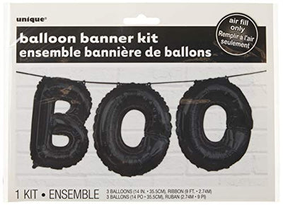 Unique Industries Black BOO Halloween Foil Balloon Letter Banner Kit 14", 1 Ct, 9 ft