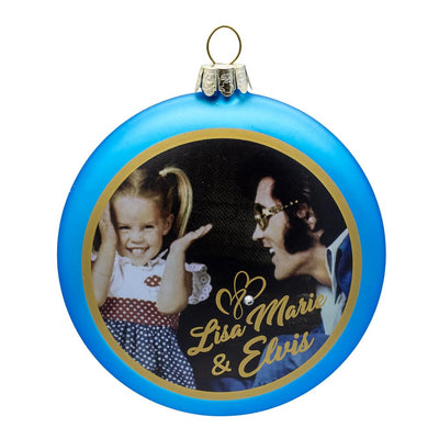 Kurt Adler Elvis Presley and Lisa Marie Glass Disc Ornament, 3"