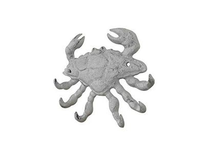 Hampton Iron HANDCRAFTED NAUTICAL D‚àö√¢COR Whitewashed Cast Iron Decorative Crab with Six Metal Wall Hooks 7"