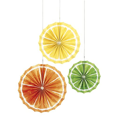Unique Industries Unique 16447 Tissue Paper Fan Decorations-Assorted Size-Citrus Fruit Summer Party-3 Count (Pack of 1), Multicolour