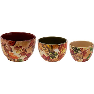 Boston International Ceramic Prep Dishwasher and Microwave Safe Fall Thanksgiving Bowl Set, 3-Sizes, Bright Autumn