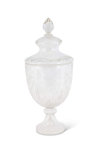 K&K Interiors 17018A 21 Inch Clear Glass Sunrise Cut Lidded Jar