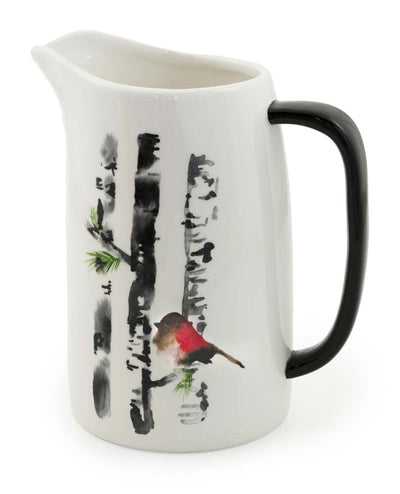 Boston International Holiday Ceramic Drink Pitcher, 5.5 Cups, Bird In Birch