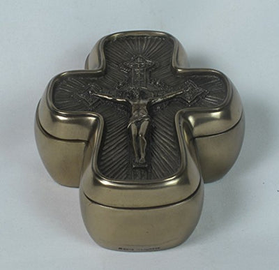 Unicorn Studio US 5.25 Inch Cold Cast Decorative Crucifix Trinket Box, Bronze Color