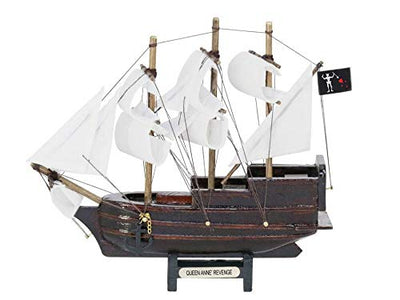 Hampton Iron Wooden Blackbeard's Queen Anne's Revenge White Sails Model Pirate Ship 7" - Pir