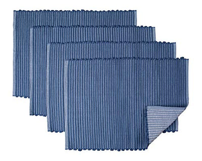 Sticky Toffee Placemat Set 100% Cotton for Kitchen or Dining Table, Basic Ribbed Reversible Large Place Mats, Set of 4 Cloth Placemats, Oeko-Tex Cotton, 14 in x 19 in, Blue