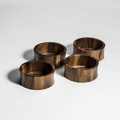Kalmar Home Acacia Wood Four Individual 6-Inch Curved Salad Bowls