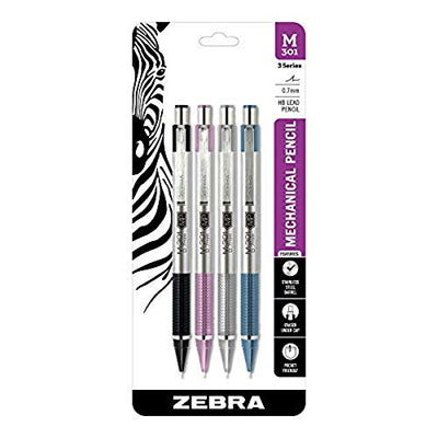 Zebra Pen M-301 Mechanical Pencil, Stainless Steel Barrel, Medium Point, 0.7mm, Assorted Color Grip, 4-Pack