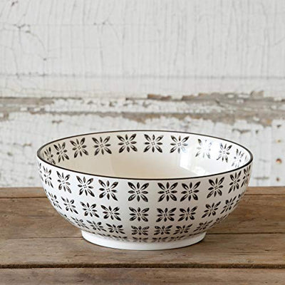 Park Hill Collection EAW00129 Norden Pattern Serving Bowl, 8-inch Diameter, Ceramic, Black and Ivory