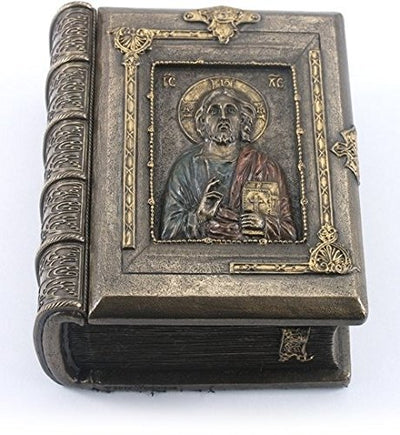 Unicorn Studio US 4.25 Inch Christ Pantocrator Book Shaped Trinket Box, Bronze Color