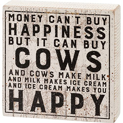 Primitives By Kathy 113585 Money Can Buy Cows Block Sign, 4-inch Square