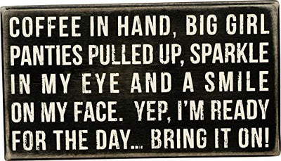 Primitives by Kathy Box Sign, Coffee in Hand and Ready for the Day, Wood, 9" x 5"