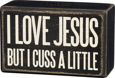 Primitives by Kathy Box Sign-Cuss A Little, 4x2.5 inches, Black, White