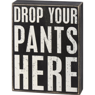 Primitives by Kathy Drop Your Pants Here Home Décor Sign, Black, White