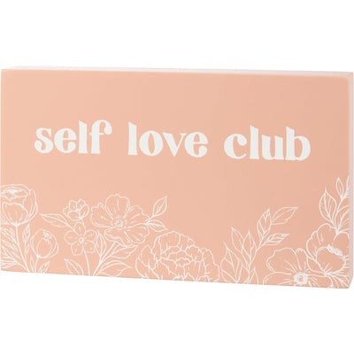 Delicate Floral Design Self Love Club Decorative Wooden Block Sign Decor 7.5 Inch x 4.5 Inch