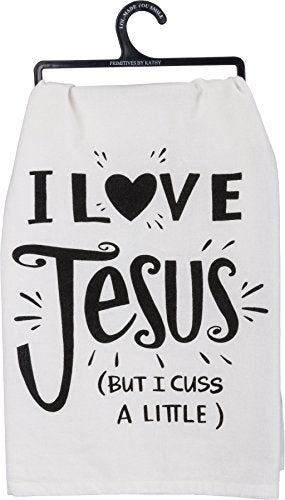 Primitives by Kathy Kitchen Towel - I Love Jesus (But I Cuss A Little)