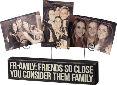 Friends So Close You Consider Them Family Wooden Block Sign with Three Photo Holders