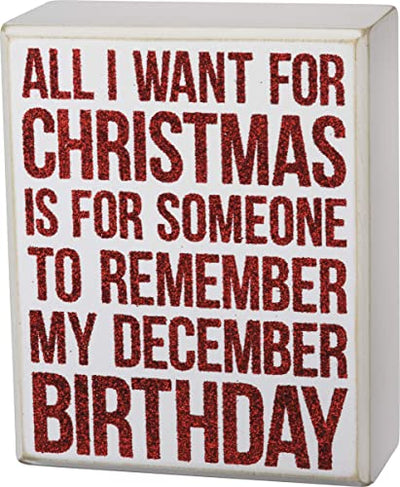 Primitives by Kathy 104091 Box Sign - December Birthday, 4x5 inches, Red, White