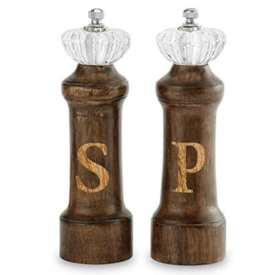 Mud Pie Beaded Salt and Pepper Grinder Set, 9.25 inch, Mango Wood