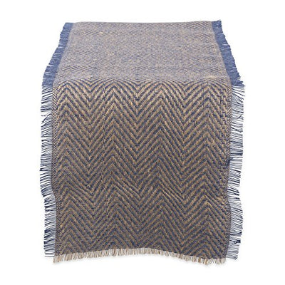 DII Design Jute Burlap Collection Kitchen Tabletop, Table Runner, 14x72, Blue Chevron