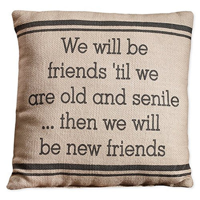 Country House Collection Primitive Sentimental Cotton 8" x 8" Throw Pillow (Friends 'Til We Are Old)