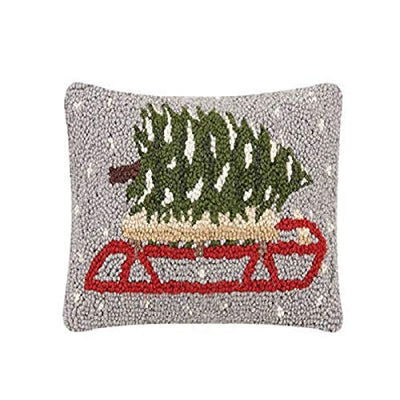 Peking Handicraft 31TG215C12OB Tree on Sled Holiday Hook Pillow, 12-inch Long