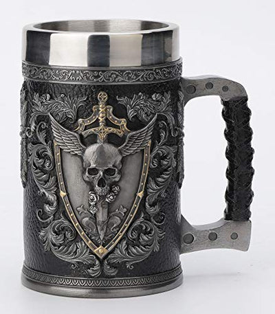 Unicorn Studio Veronese Design 6 1/4 Inch Teutonic Winged Skull Crest Beer Stein Cold Cast Resin Pewter Finish Statue Home Decor