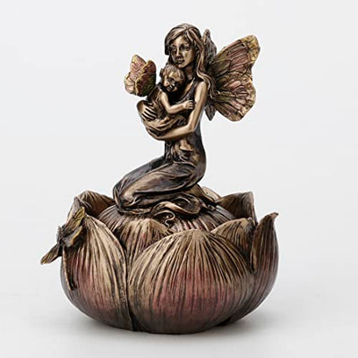 Unicorn Studio Veronese Design 5 3/4 Inch Mother Fairy Holding Baby Sitting on Flower Secret Resin Decorative Box