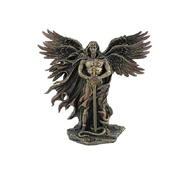 Unicorn Studio WU75976A4 Guardian Angel Statue in 6 Winged with Sword and Serpent, 11-inch Cold Cast Bronze