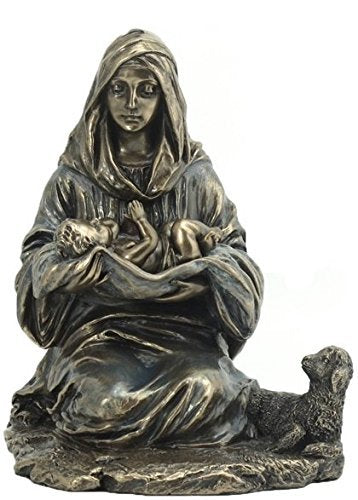 Unicorn Studio US 6.13" Mary Holding Baby Jesus with Lamb Aside Figurine, Bronze Color