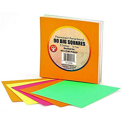 Hygloss Products Fluorescent 5" Squares Poster Board Squares-90 Pcs, Assorted