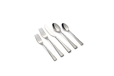 Cambridge Silversmiths Henrietta Hammered 20-Piece Flatware Silverware Set, Stainless Steel, Service for 4, Includes Forks/Spoons/Knives