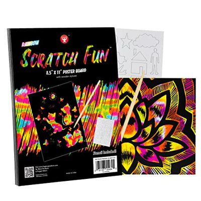 Hygloss Products Scratch Fun Magic Drawing Black Matte Arts and Crafts-DIY Project-Kit Includes 25 Rainbow Papers, 8.5 x 11 Inches and 5 Wooden Stylus Sticks, Count