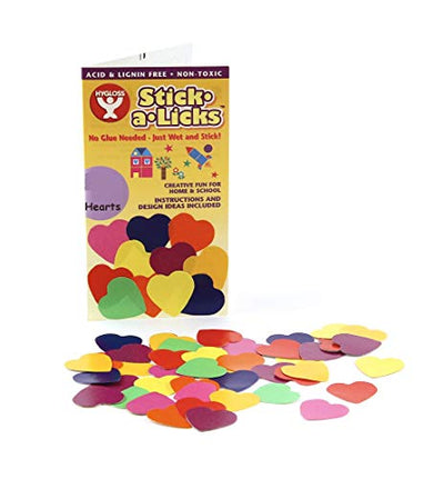 Hygloss Products Stick-A-Licks for Arts & Crafts-Classroom Activities-Fun for Kids-Heart Shapes-1.5 Inches-225 Pcs, Asst'd Colors