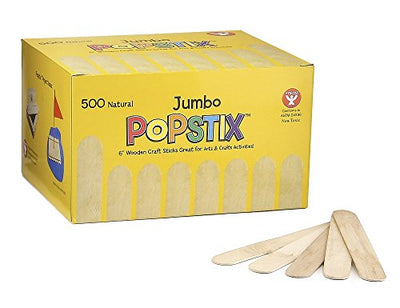 Hygloss Products, Inc Natural Wood Popstix - Jumbo Size Popsicle Sticks - Art Projects, Kids Crafts, Baking Supplies - 6 x 3/4 inches, 500 Pieces (72250)