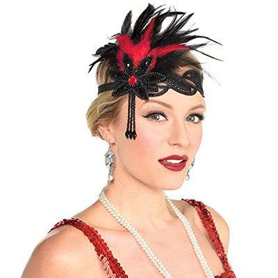 Amscan Feather Gatsby Headband - One Size | Black/Red - Pack of 1